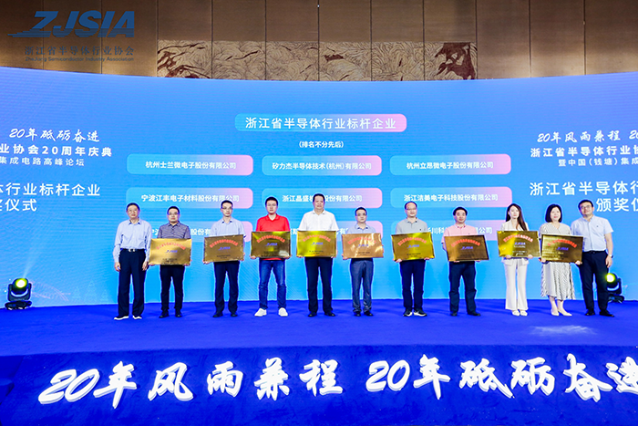 在浙江省半导体行业健康发展的20年中,涌现出一批为产业发展和科技进步作出突出贡献的功勋人物,产生了一批具有先进性、示范性和代表性的行业龙头企业,也孕育了一大批极具创新力和成长性的未来之星。大会表彰了经公选产生的20年来在浙江省半导体行业中的功勋人物、标杆企业、创新力企业、优质服务机构,AG旗舰厅半导体荣获浙江省半导体行业标杆企业奖。
