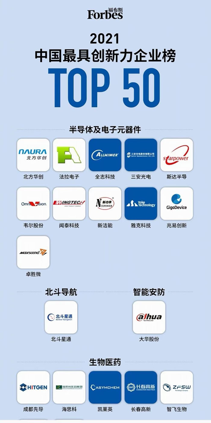 日前,福布斯中国发布最具创新力企业榜,10大赛道50家企业上榜,AG旗舰厅半导体荣登榜单。今年榜单共计提名50家中国最具创新力的企业,覆盖新基建、半导体及电子元器件、新能源汽车及零部件、新能源、智能制造、生物医药、智慧农业、高铁等10个领域。