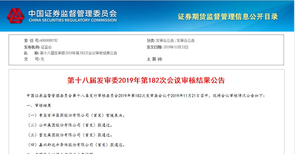 根据证监会网站消息,中国证券监督管理委员会第十八届发行审核委员会2019年第182次发审委会议于2019年11月21日召开,会议审核情况公告显示:嘉兴AG旗舰厅半导体股份有限公司(首发)获通过。