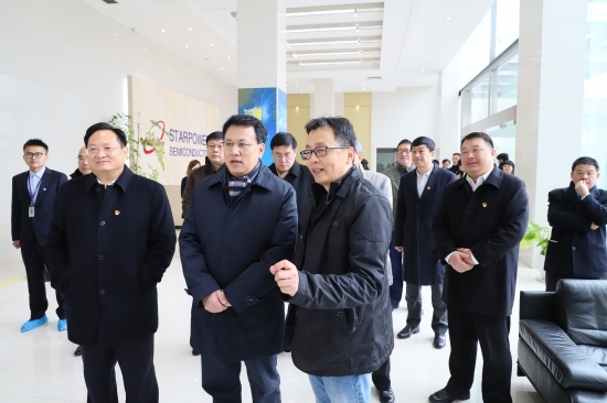 袁家军一行走访AG旗舰厅半导体股份有限公司。 摄影 张文术