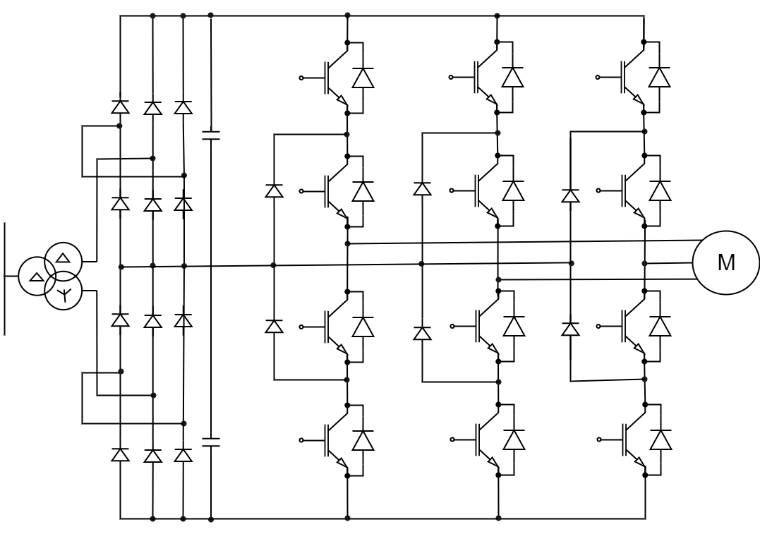 拓扑1:整流+三相三电平方案该拓扑主要用于中压变频器。