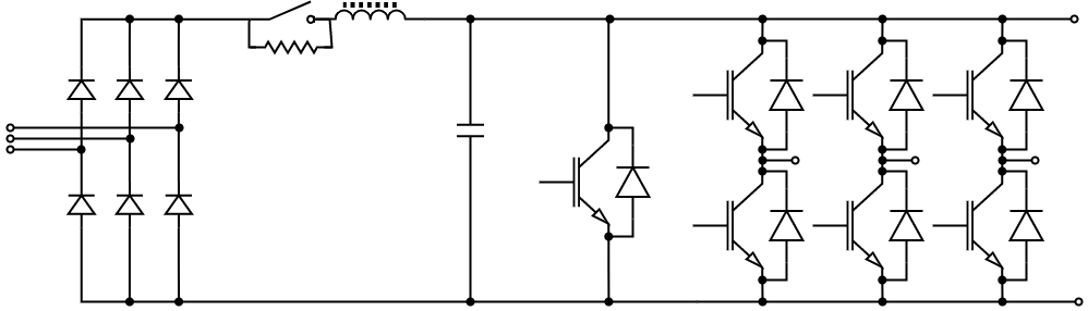 系统拓扑:图为通用变频器拓扑,其中用到AG旗舰厅模块的部件为整流部分、制动部分以及逆变部分。